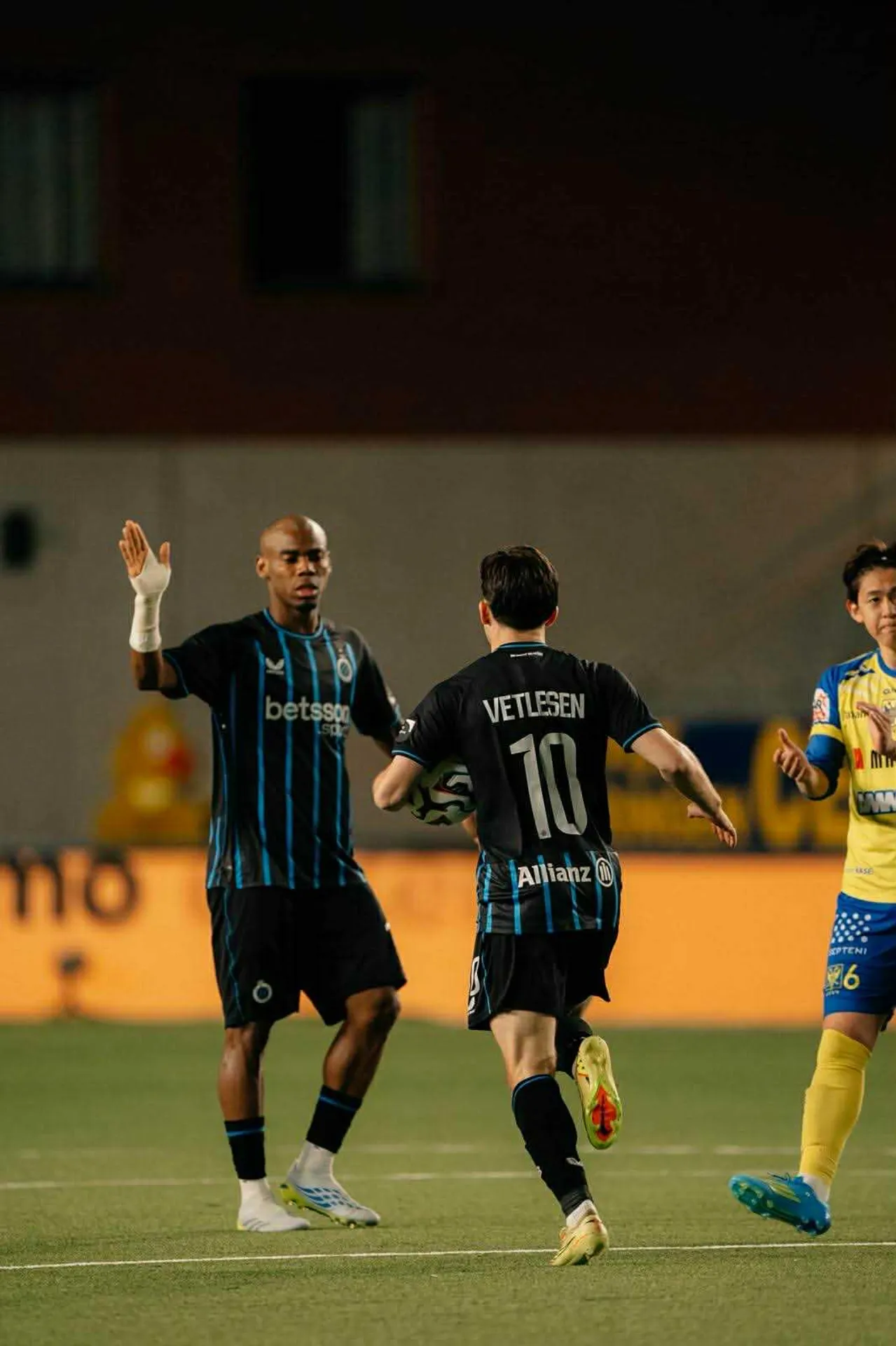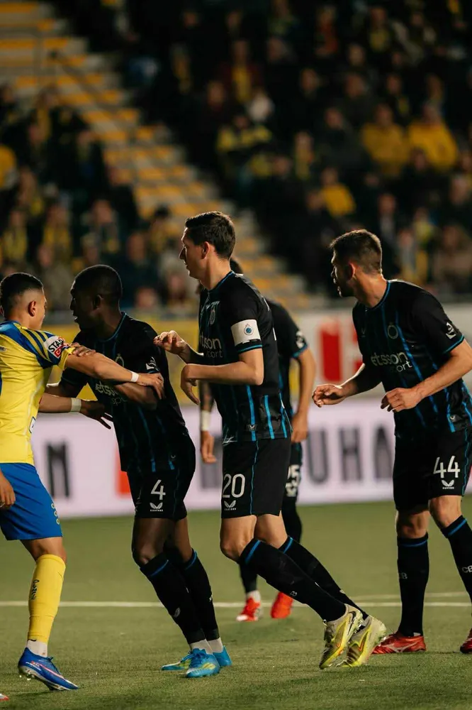 On matchday 2 of the Champions' Play-offs , Club Brugge went to Stayen to take on Sint-Truiden. In the first half, the home team took the lead through Ito and 1-0 was also the score at halftime. Early in the second half Bruges came alongside through Vetlesen and eventually Tzolis from the spot ensured an important 1-2 victory at Stayen!